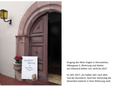 Die von Eleonore Kötter 1974 in Aach begonnene und in Dornstetten zur Tradition gewordene vorweihnachtliche „Dezember-Galerie“ wird von der Kunststiftung fortgeführt. Nach 39 Jahren in Dornstetten stand die Atelierwohnung der Künstlerin letztmalig 2017 für die Dezember-Galerie Verfügung. Neues Domizil seit 2018 - jeweils mit thematischer Ausstellung und Kinder-Kreativwerkstatt - ist der Veranstaltungsraum im historischen Fruchtkasten in der Altstadt Dornstetten.